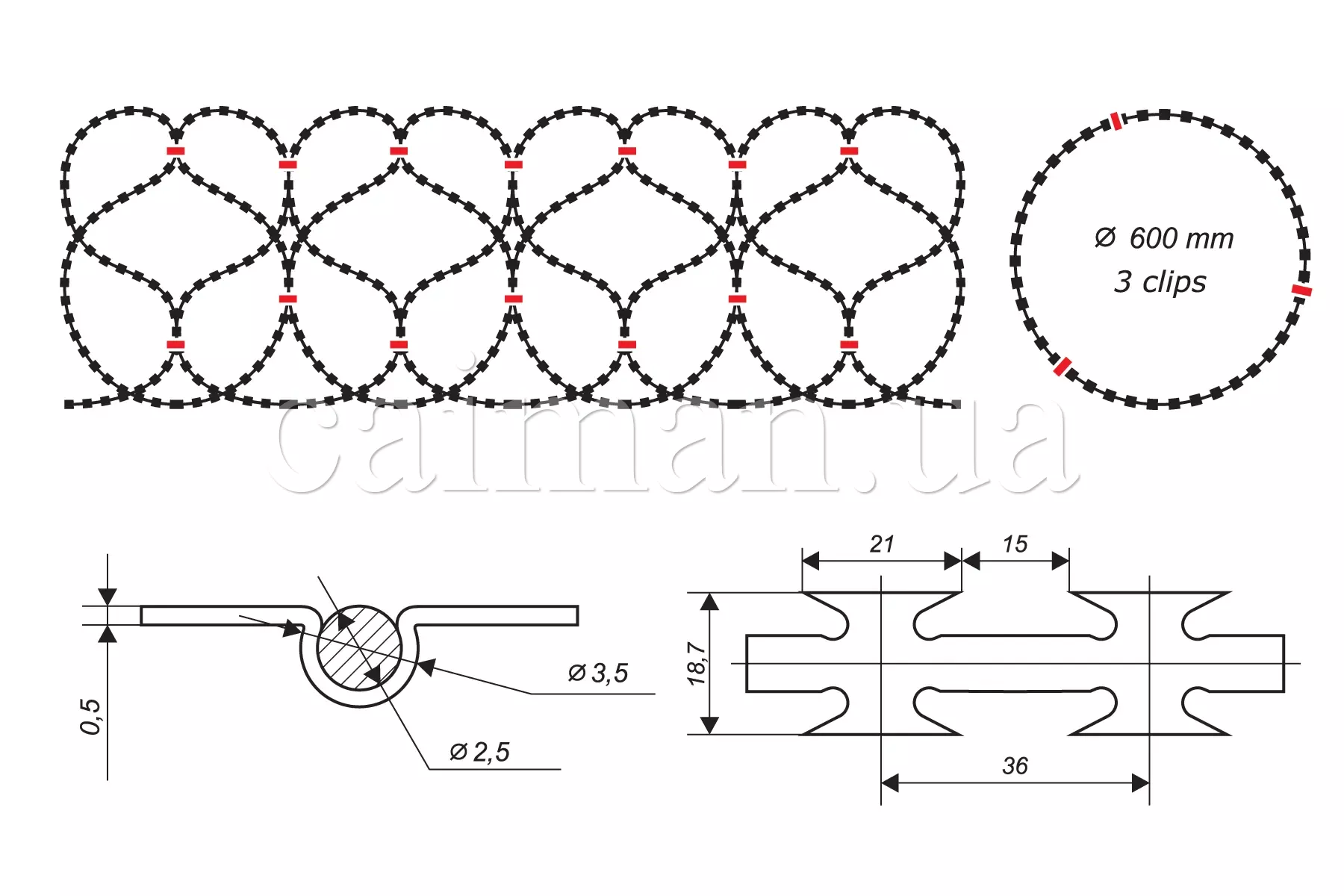 La barrière en fil de concertina Egoza-Standard-600/3 a un diamètre de 600 mm, trois clips par tour et peut être installée à une distance de 22 à 27 mètres. L'étirement recommandé de la barrière en fil de concertina Egoza-Standard-600/3 est de 22 mètres, tandis que l'efficacité de la barrière en fil de concertina sera maximale, et le diamètre de la barrière en fil de concertina une fois installée sera de 530-540 mm.