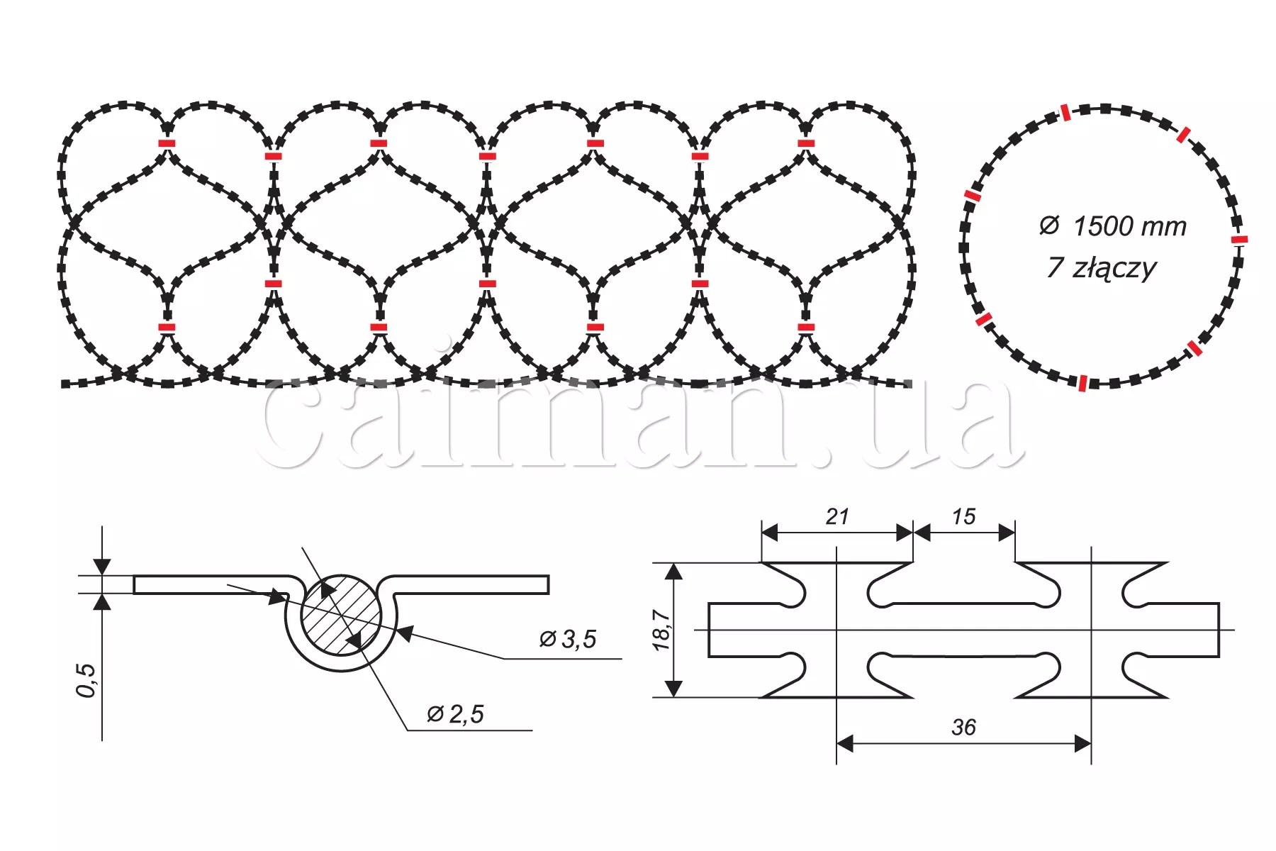 Zasieki koncertina Egoza-Standard-1500/7 wykonany jest z drutu ostrzowego Egoza-Standard o średnicy 3,5 mm, posiadającego rdzeń wykonany z drutu ze stali wysokowęglowej o średnicy 2,5 mm, co zapewnia jej wysoką niezawodność i skuteczność, a także niską cenę, w jakiej można u nas kupić zasieki Egoza-Standard.
