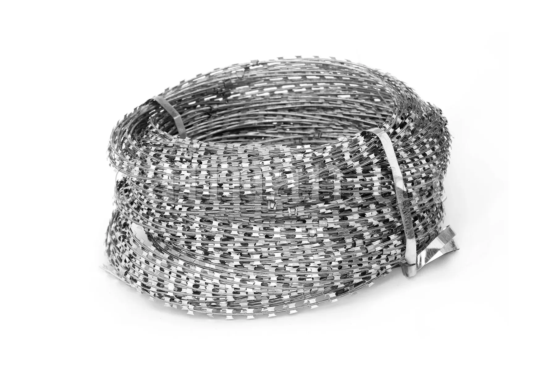 Спіральний бар'єр безпеки Єгоза-Стандарт-400/5 виготовляється з колючого дроту Єгоза-Стандарт діаметром 3,5 мм, що має сердечник із високовуглецевого сталевого дроту діаметром 2,5 мм, що забезпечує йому високу надійність і ефективність, а також низьку ціну, за якою у нас можна купити загородження Єгоза-Стандарт.