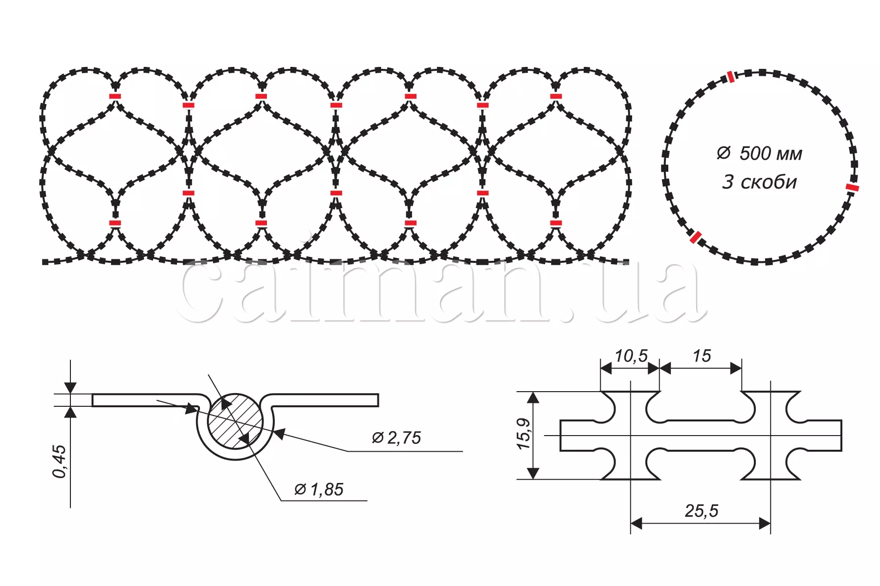 Кількість скоб на кожній парі витків, шт. | 3 |