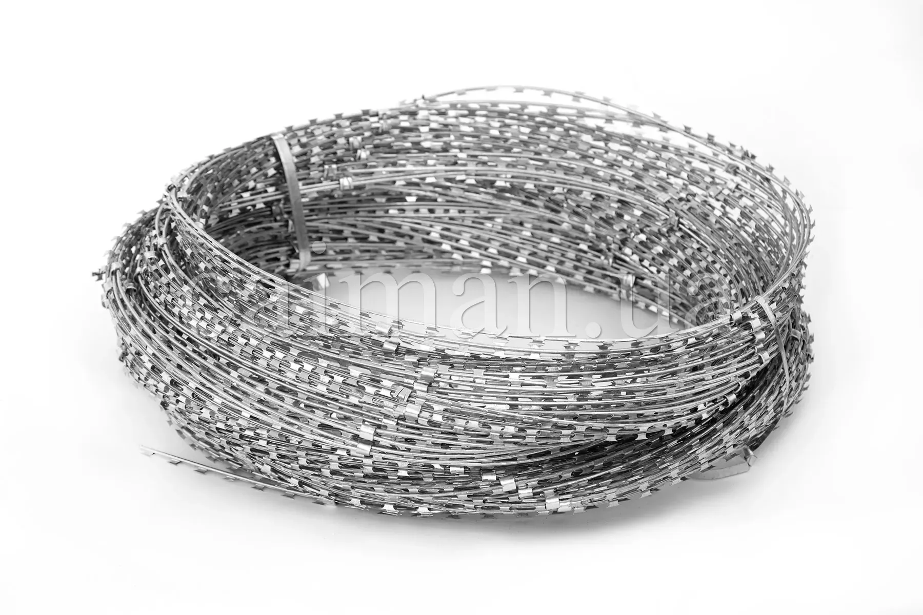 Спіральний бар'єр безпеки Гюрза 500/3 виготовляється з колючого дроту Гюрза діаметром 2,75 мм, що має осердя з високовуглецевого сталевого дроту діаметром 1,85 мм, що забезпечує йому високу надійність і ефективність, а також низьку ціну, за якою у нас можна купити загородження Гюрза.