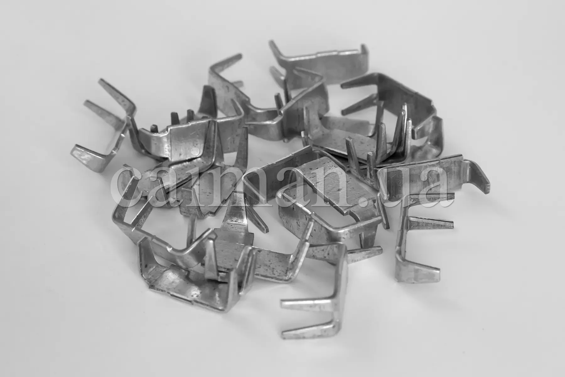 Сполучна скоба Стандарт виготовляється з рулонної оцинкованої сталі товщиною не менше 1,2 мм та має довжину не менше 37 мм. Такі параметри скоби забезпечують надійне обтиснення та утримання з'єднаних нею ниток армованої колючої стрічки Єгоза діаметром до 3,6 мм, а цинкове покриття надійно захищає сполучну скобу Стандарт від корозії. Сполучна скоба Стандарт має конструкцію ластівчин хвіст, яка при обтисканні утворює міцне з'єднання, що надійно утримує нитки колючого дроту Єгоза.